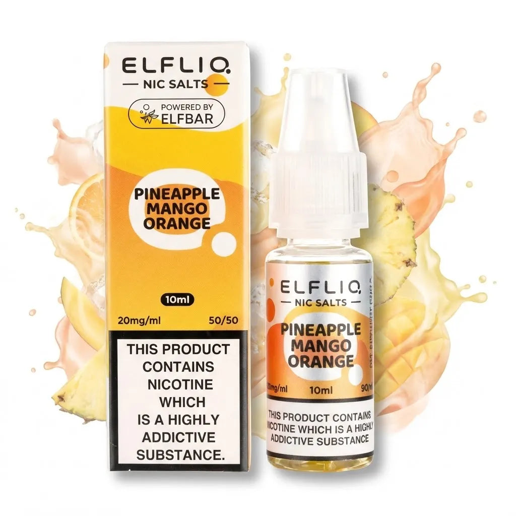 Elfliq Nic Salts are 10ml nicotine salt e-liquids crafted by Elfbar, known for their smooth inhalation, strong flavour profiles, and quick nicotine absorption. Available in 5mg, 10mg, and 20mg, this range is suitable for adults who prefer pod systems and MTL (mouth-to-lung) devices. The collection includes fruity, icy, menthol, beverage, and tobacco-inspired flavours.