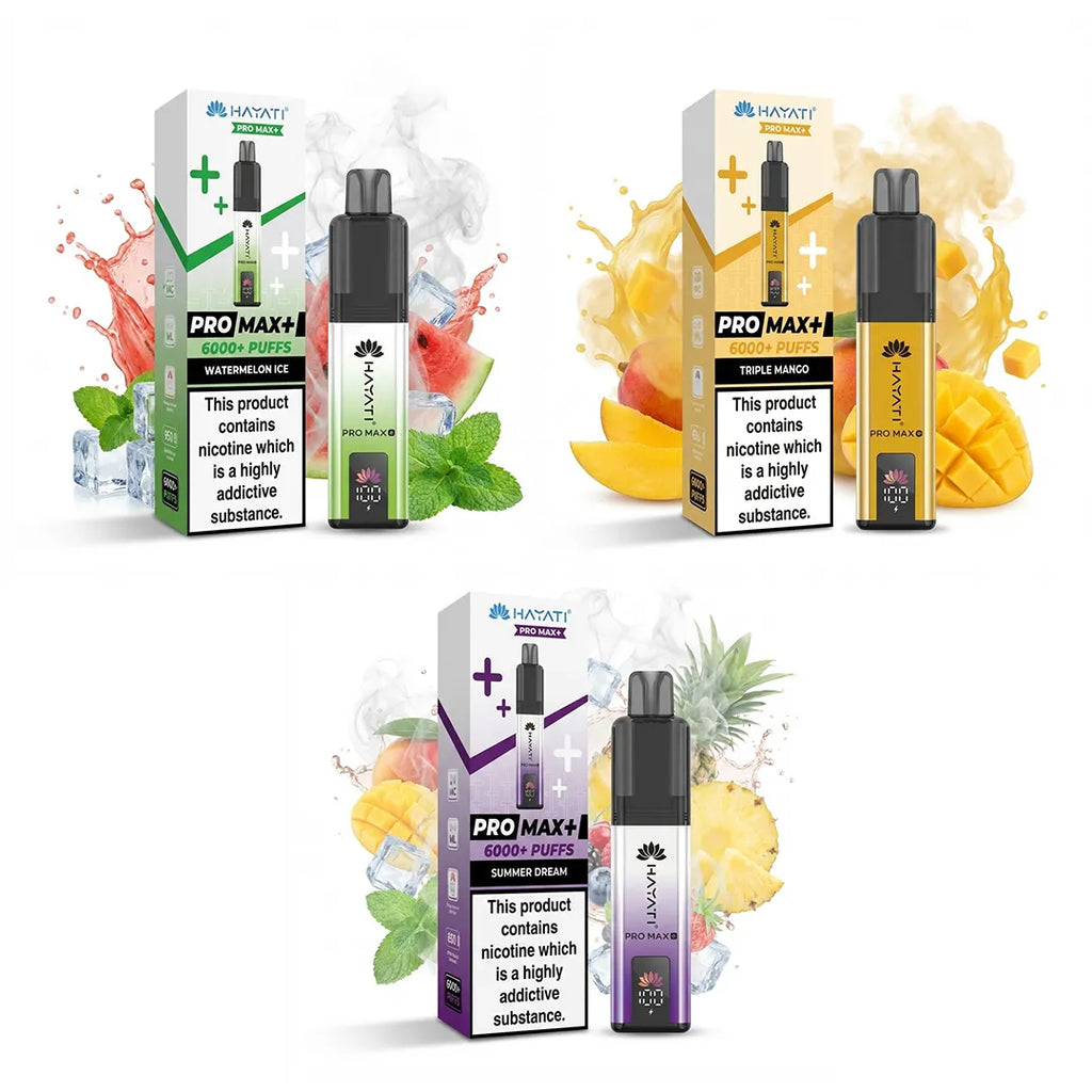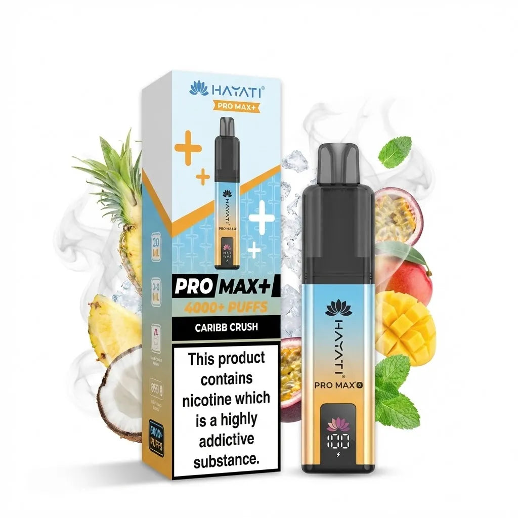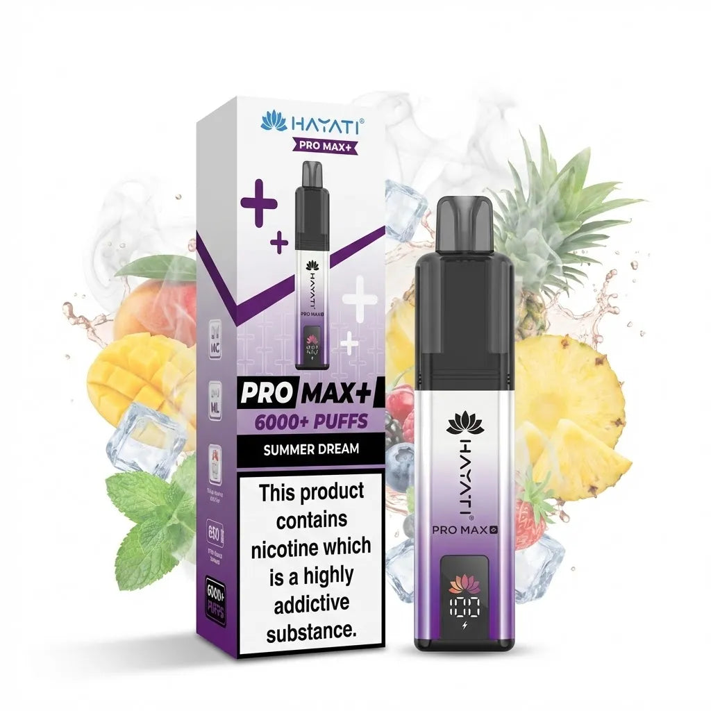 Experience premium vaping with the Hayati Pro Max Plus 6000 Prefilled Pod Kit. Designed for smooth flavour delivery and consistent vapour, this advanced kit features an 850mAh turbo-recharging battery and a sleek, modern display screen for effortless monitoring of battery life and e-liquid levels.